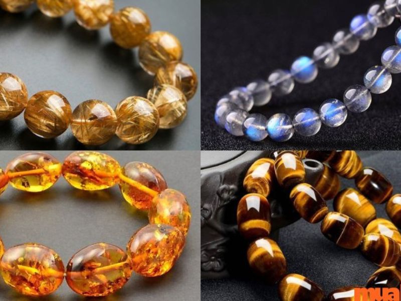 - Vòng tay phong thủy: Lựa chọn các loại đá phong thủy như thạch anh tóc vàng, mắt hổ vàng, hổ phách, xà cừ… để giúp cân bằng năng lượng và mang lại cảm giác bình an cho người đeo.