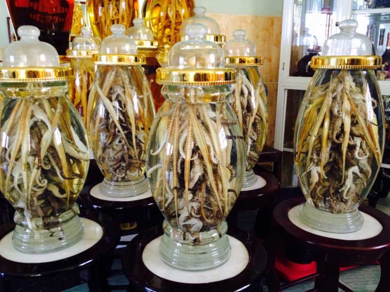 Hải sâm, được mệnh danh là “nhân sâm ở biển”, từ lâu đã được sử dụng trong các bài thuốc Đông y để bổ thận và tráng dương. Rượu ngâm hải sâm được cho là có ích cho sức khỏe sinh lý nam giới.