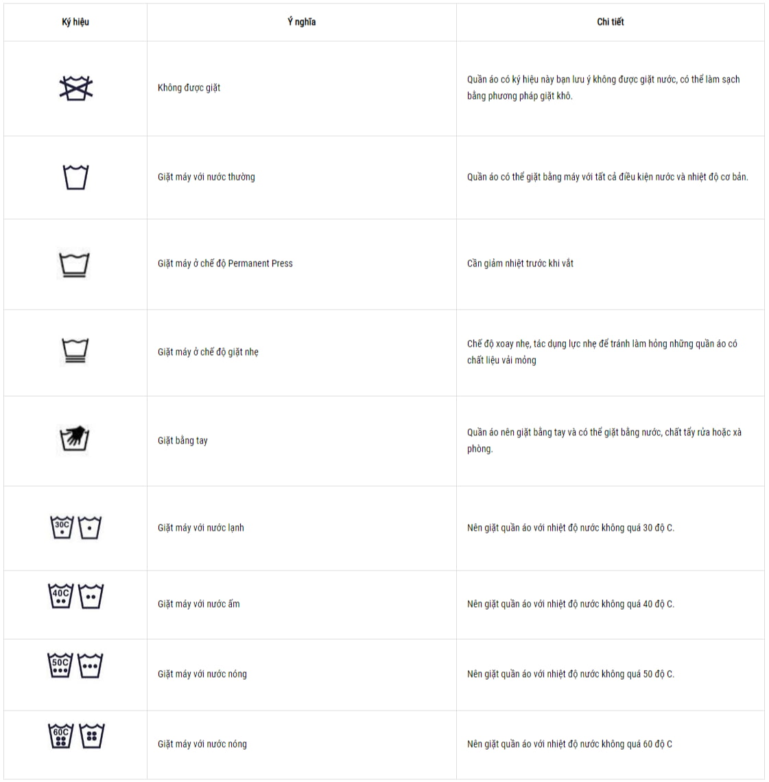 - Ký hiệu được thiết kế để dễ dàng nhận biết và hiểu, nhầm hướng dẫn người tiêu dùng cách chăm sóc và bảo quản quần áo phù hợp, đặc biệt là với những loại vải đòi hỏi sự chăm sóc đặc biệt.