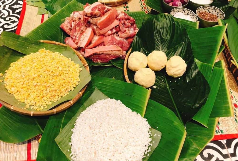 Đậu xanh, thành phần không thể thiếu trong bánh chưng, không chỉ giúp làm mát cơ thể mà còn có khả năng giải độc hiệu quả, cải thiện làn da, và giúp cơ thể thư giãn, thoải mái. Gạo nếp, mang lại hương vị đặc trưng cho bánh chưng, cũng góp phần vào việc giảm stress và mệt mỏi, đồng thời cung cấp năng lượng ổn định cho cơ thể.