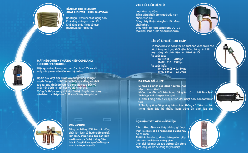 - Heat pump công nghiệp Korewin được trang bị chức năng chống vi khuẩn hàng tuần giúp ngăn ngừa sự lây lan của bệnh legionnaires, một dạng viêm phổi nghiêm trọng có thể gây tử vong