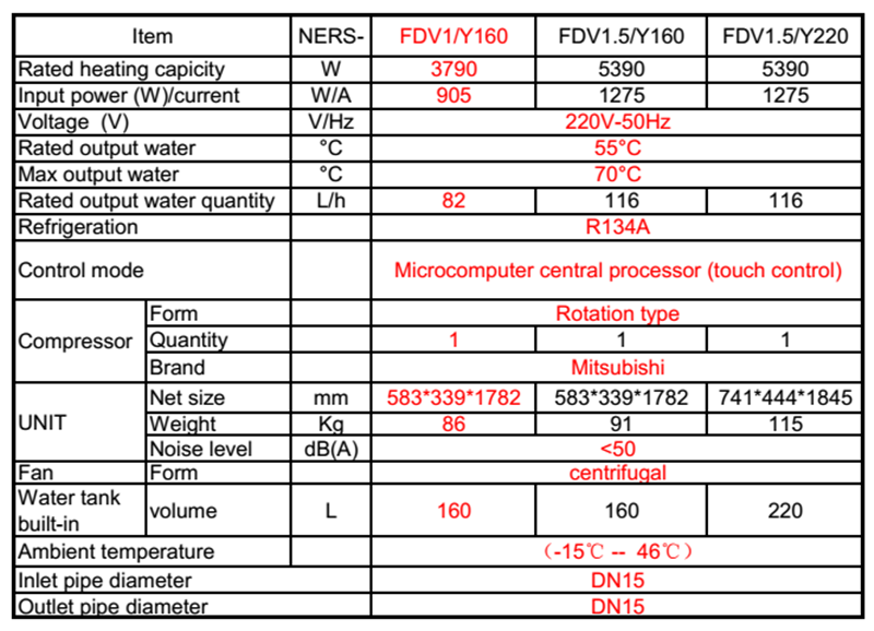 Ưu điểm của máy bơm nhiệt nước nóng FDV1.5 / Y160:
