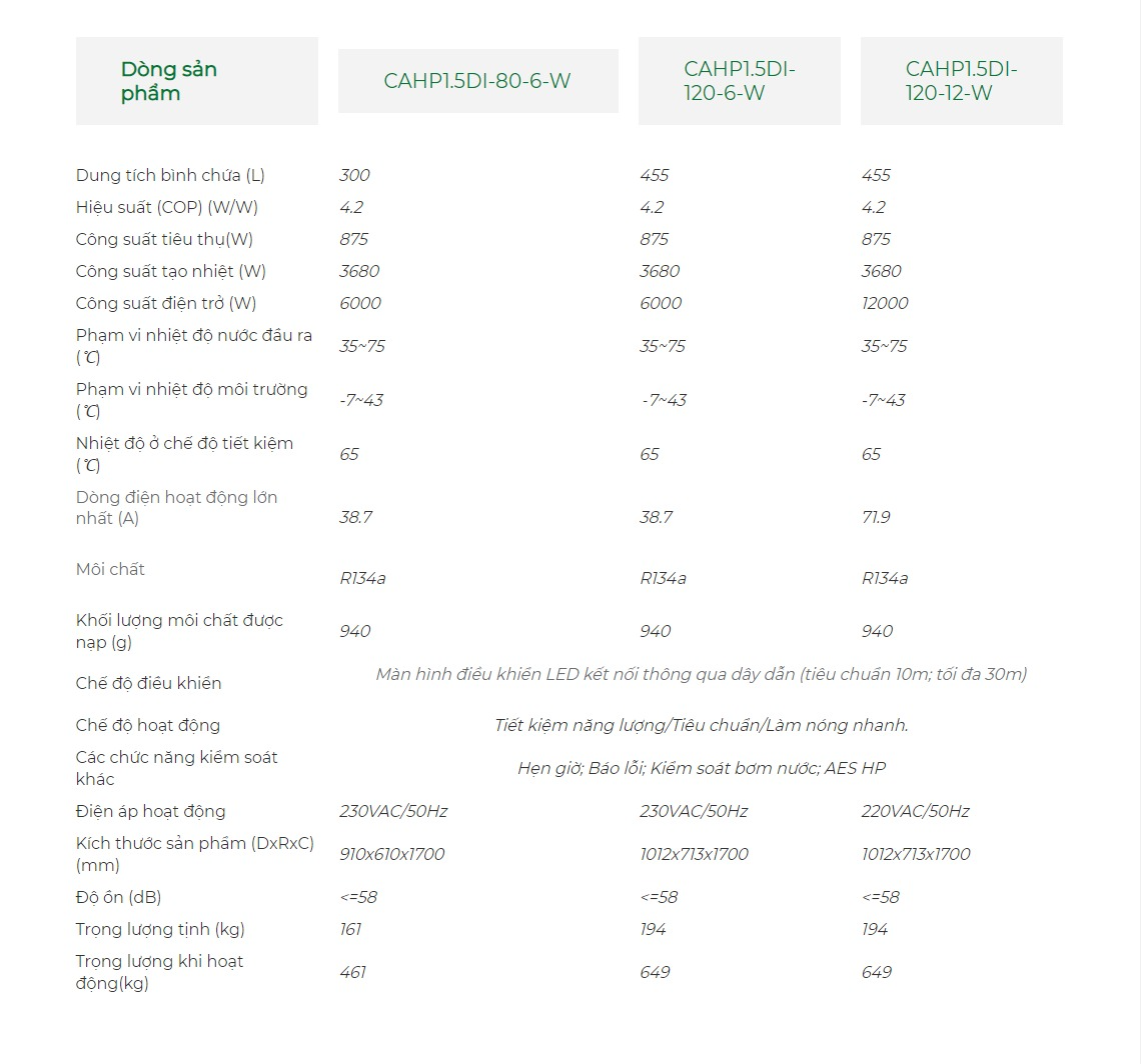 Một số tính năng nổi bật của A. O. Smith CAHP-1.5HP là: