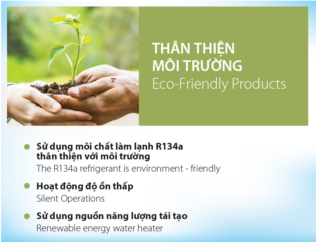 - Thân thiện môi trường: Sử dụng môi chất làm lạnh R134a thân thiện với môi trường
