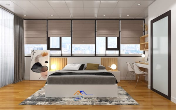 - Đặc điểm: Phòng ngủ cho vợ chồng cần tạo không gian riêng tư, thoải mái và hài hòa.