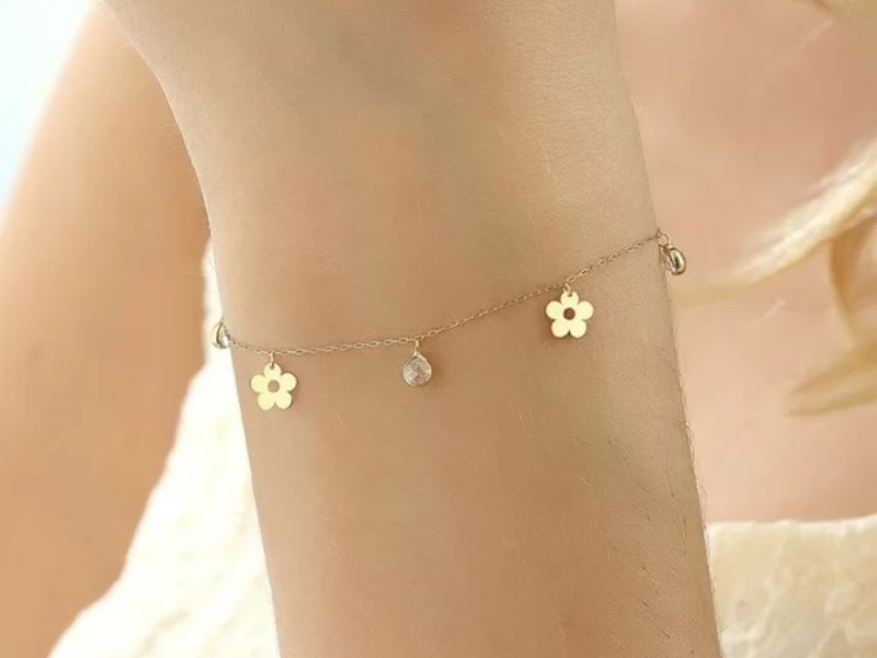 Những chiếc lắc tay vàng 18k dưới 3 triệu với hình hoa bông là một lựa chọn hoàn hảo cho phái đẹp. Với thiết kế tinh tế, những bông hoa 5 cánh xen kẻ với nhau không chỉ tạo nên vẻ đẹp mảnh mai mà còn giúp làm nổi bật làn da khi đeo.